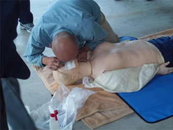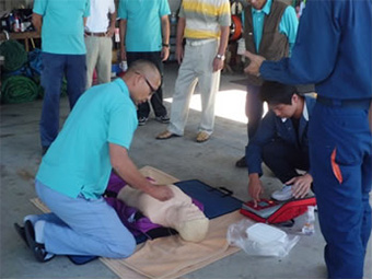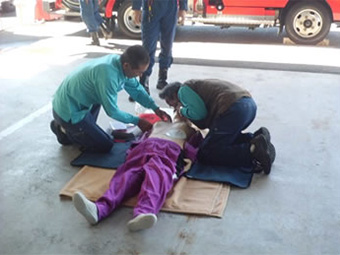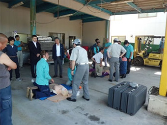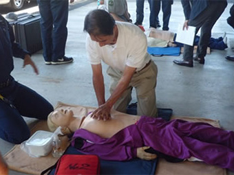 小倉南消防署の隊員さんを講師に迎え、AEDを使った心肺蘇生法を学びました。